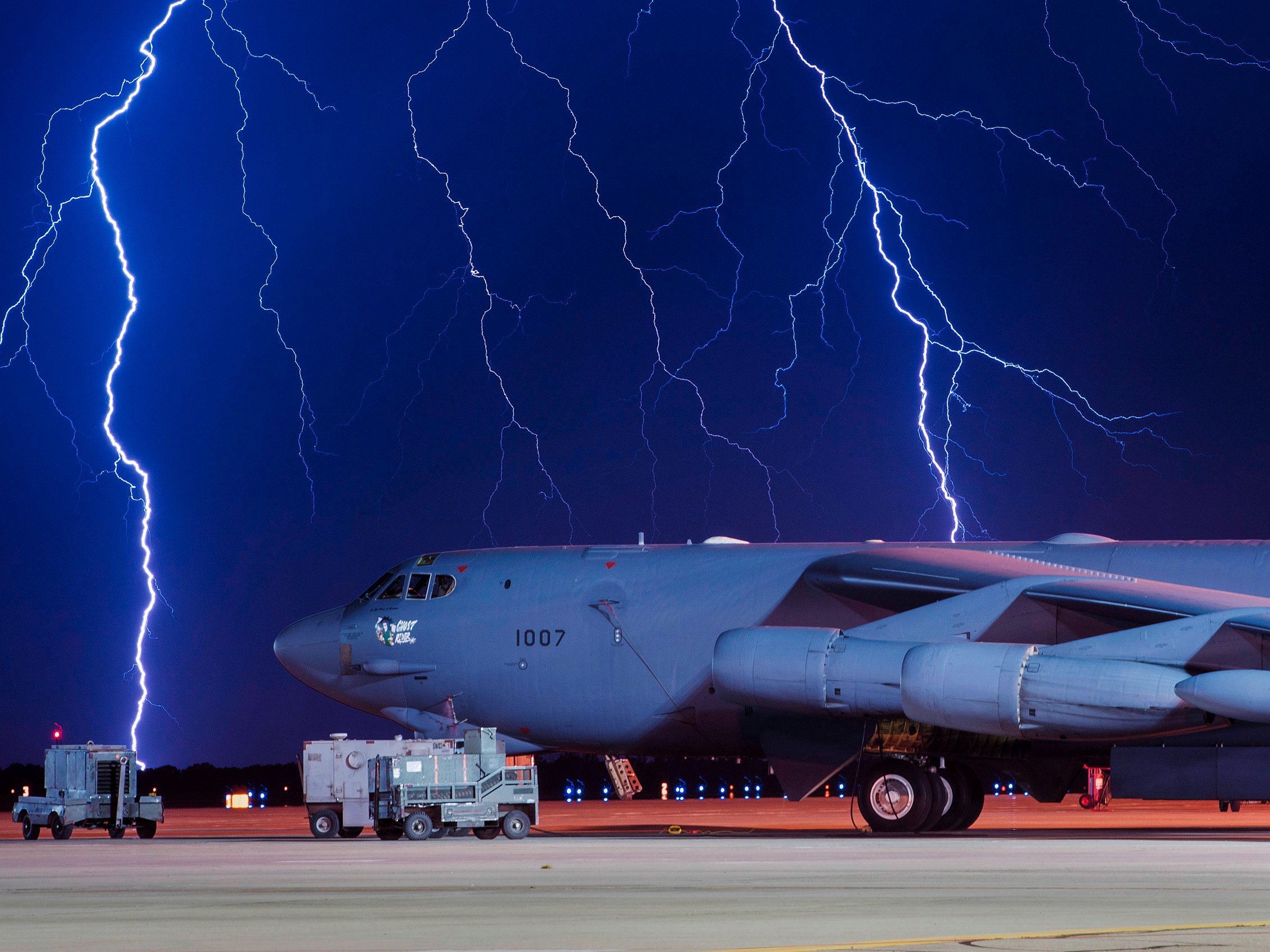 Lightning strikes behind a B-52H Stratofortress at Minot Air Force Base, North Dakota, U.S.Reuters/Courtesy J.T. Armstrong/U.S. Air Force photo/Handout