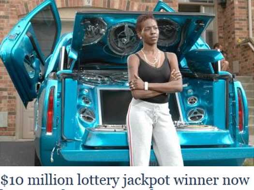 She subsequently spent her winnings on a “big house, fancy cars, designer clothes, lavish parties, exotic trips, handouts to family, loans to friends,” and in less than a decade she’s back “riding the bus, working part-time, and living in a rented house.”