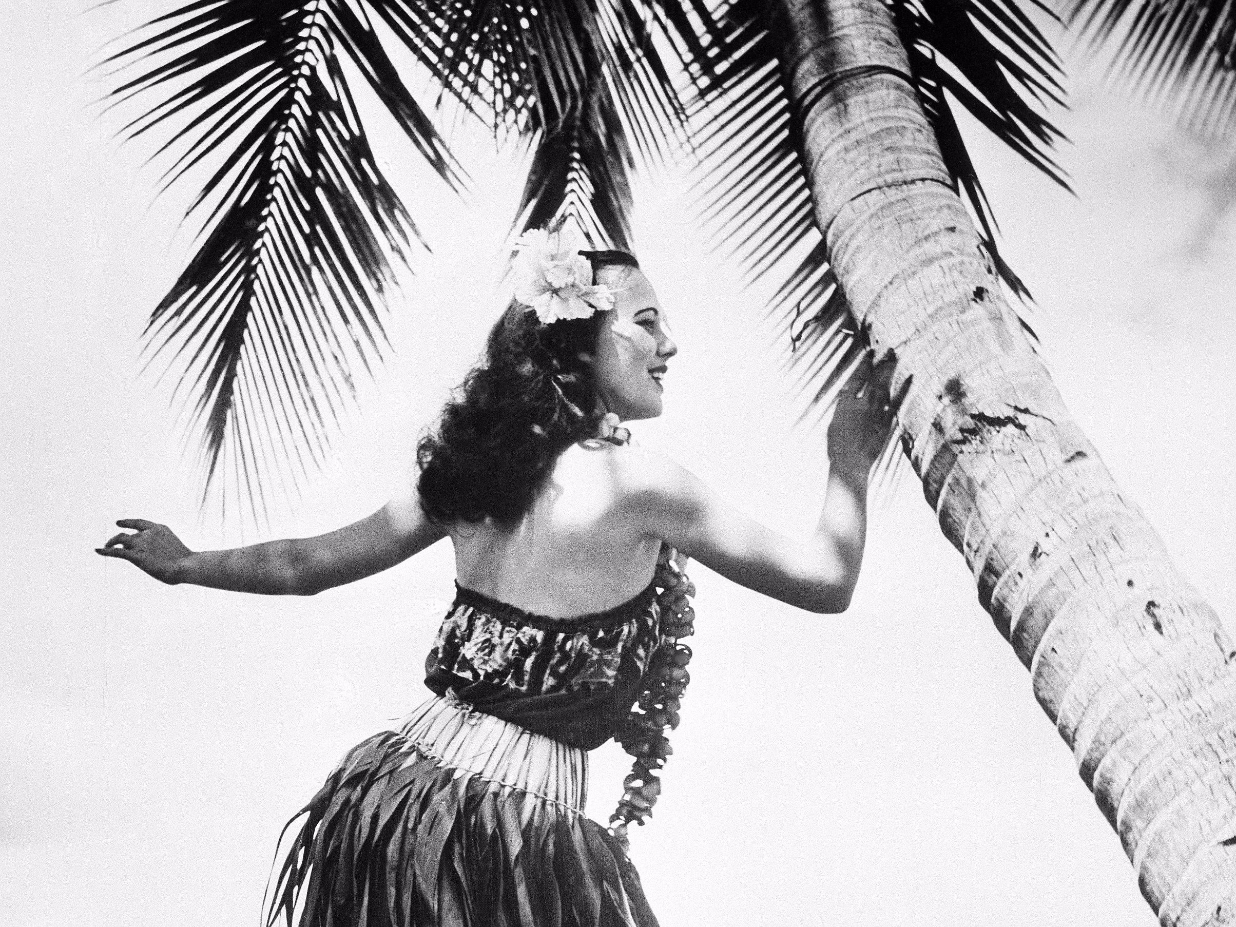 March 1955 – A hula dancer swings her ti leaf skirt in the traditional Hawaiian dance.AP