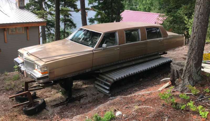 Robert Falck from Vancouver is selling a 1989 Cadillac Brougham limo that has skis instead of front wheels, and tracks instead of rear wheels. It’s a wacky build that was made specifically for the big screen, and it can be yours for only $6,000.
