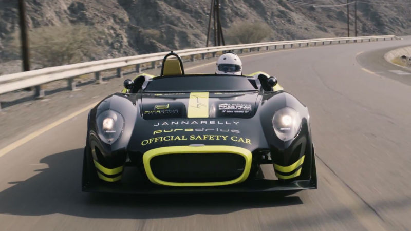 A Jannarelly Design-1 OSC decked out in “Official Safety Car” branding was set to do a demonstration run between the motorcycle and car run groups at the Pikes Peak International Hill Climb, but it crashed Thursday afternoon, reports KOAA. The car veered off the road in nearby Colorado Springs and crashed into the trees. The driver was cited for careless driving.