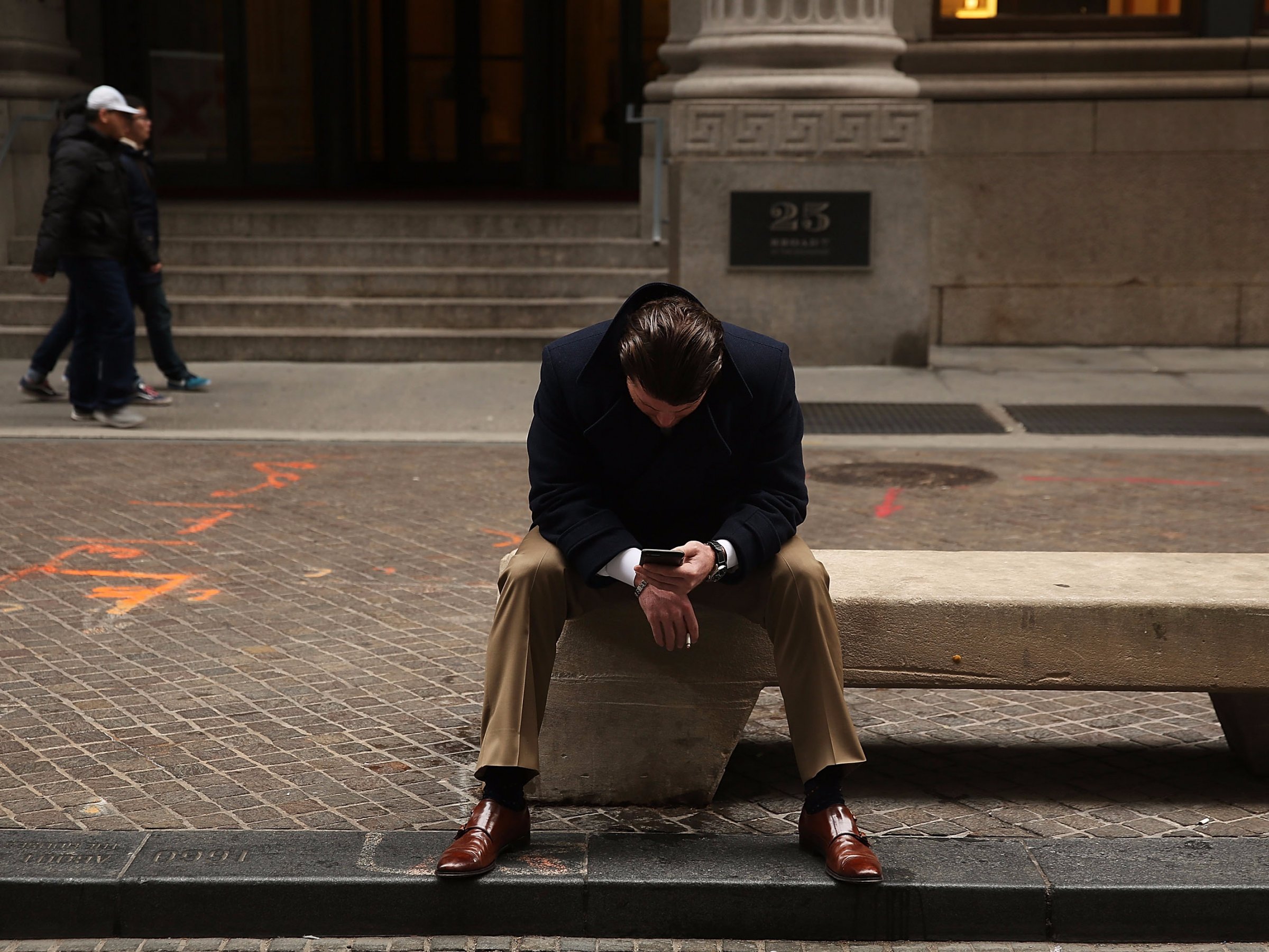 A man outside the New York Stock Exchange on January 15 in New York City.Spencer Platt/Getty Images