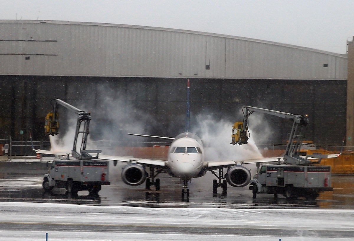 New York Airport BlizzardA plane being de-iced.Bruce Bennett/Getty Images