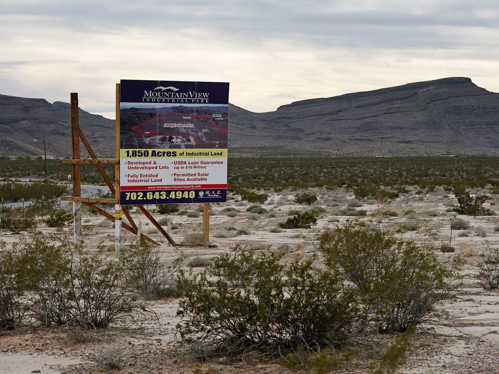AP Photo/John LocherA sign advertises Mountain View Industrial Park near Apex Industrial Park on December 9, 2015, in North Las Vegas, Nevada.The electric-car startup Faraday Future has made some incremental progress toward getting its operation running at full-speed since the company made its US debut at the Consumer Electronics Show in Las Vegas.