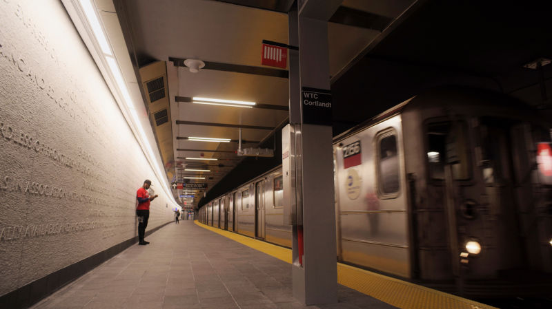 Among other features, the station is experimenting with a new form of ventilation to keep the platform cool, local CBS news reports—something anyone will appreciate if they’ve ever had to use the NYC subway in the thick of summer. It’s also incredibly handicap accessible. And, on the aesthetic side of things: it looks very modern and features a mosaic of the Declaration of Independence and the UN’s Universal Declaration of Human Rights in honor of those who lost their lives in the attack.