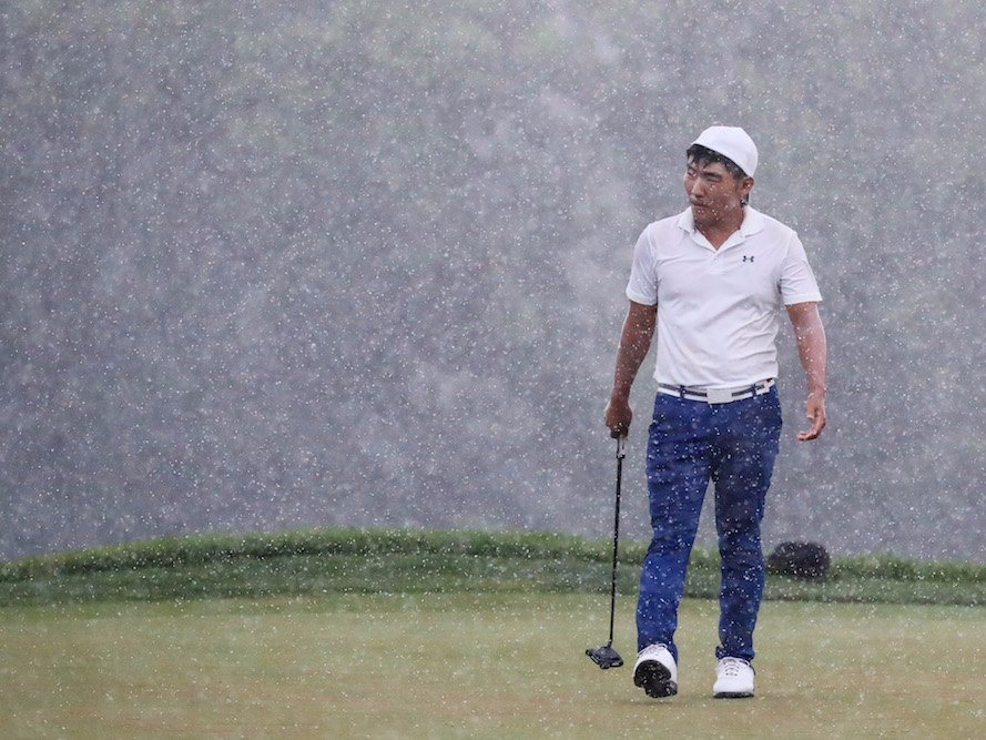 The 30-year-old South Korean was in contention on Sunday at the Quicken Loans National, sitting just one stroke off the lead with three holes to play at Maryland’s TPC Potomac. He was lining up a four-foot birdie putt on the 16th green when the once blue sky opened up and began to pour rain.