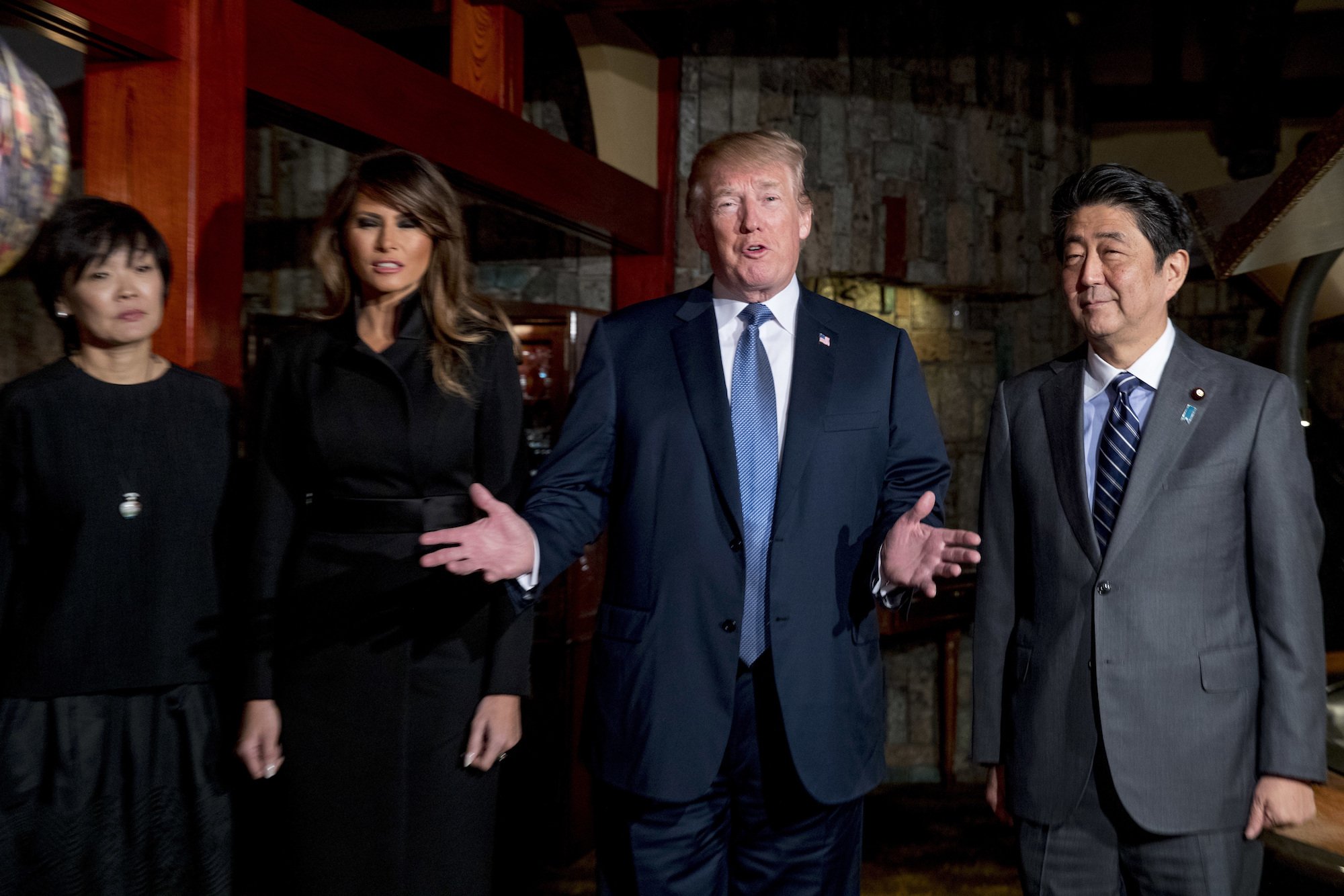 During his trip to Japan, Trump dined with Japanese Prime Minister Shinzo Abe at Ginza Ukai Tei, which specializes in teppanyaki, a style of Japanese cuisine in which chefs cook meat and vegetables on an iron griddle. The restaurant’s parent company, Ukai Co., saw its stock climb as much as 7.3% on Monday after Trump’s visit, according to Forbes.