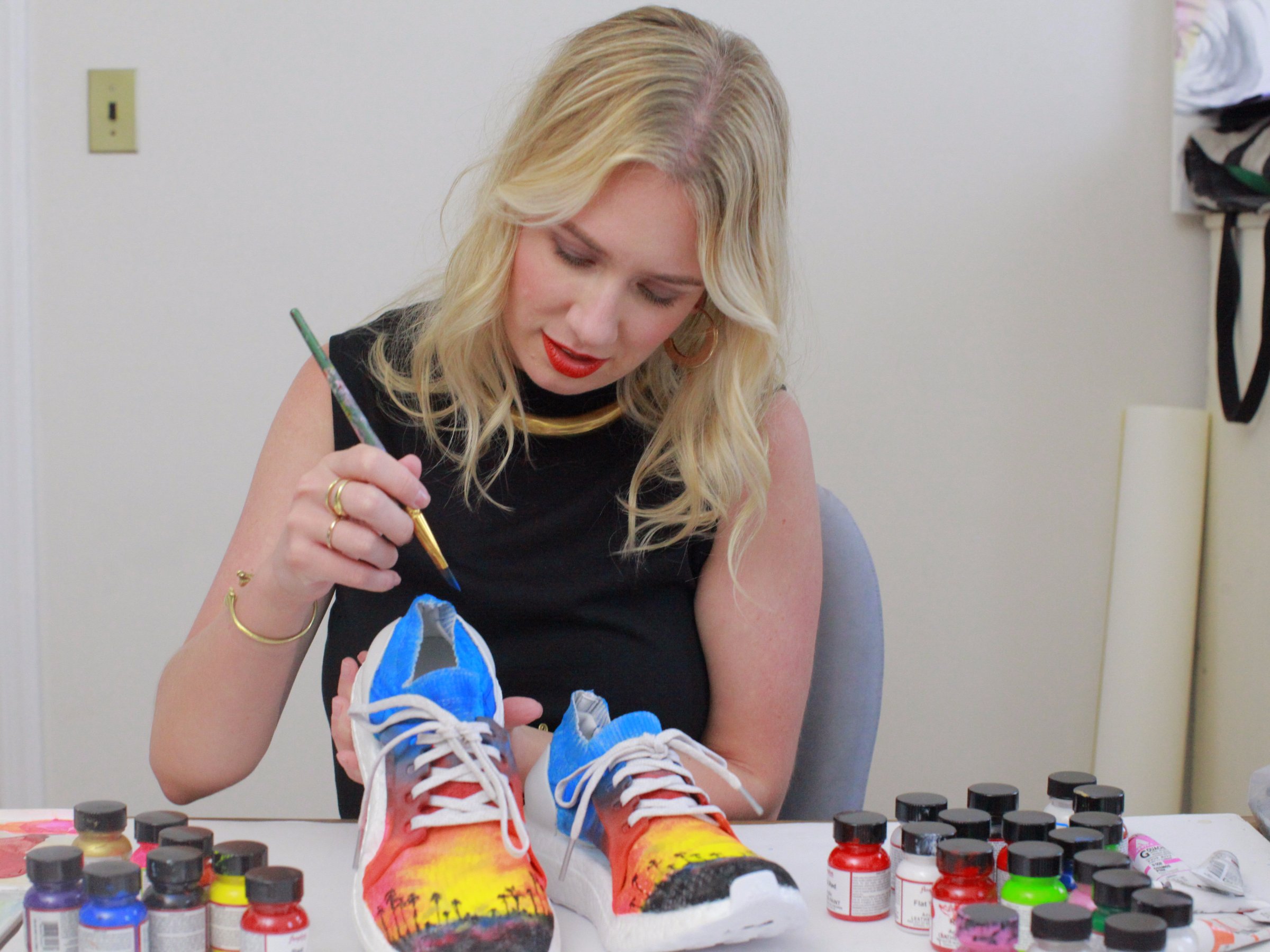 Fashion illustrator Meagan Morrison painting the California shoe.Adidas