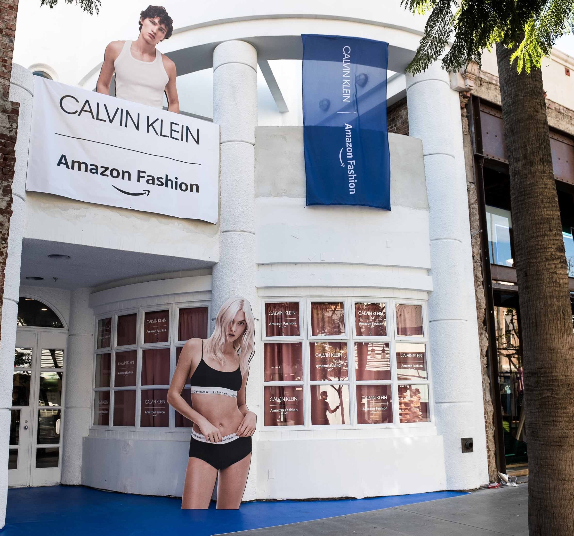 - Amazon and Calvin Klein have set up physical pop-up stores in New York City and Los Angeles, in addition to an online branded store exclusively on Amazon.