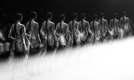 A model on the catwalk during the Jaeger London spring / summer 2012 show at London Fashion Week at Somerset House, London.Yui...