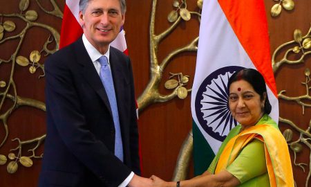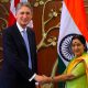 Phillip Hammond shakes hands with Indian Minister Sushma Swaraj during a visit in 2015, when Hammond was foreign secretary.REUTERS/Adnan Abidi LONDON —...