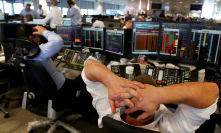 A trader from BGC, a global brokerage company in London’s Canary Wharf financial centre reacts during trading June 24, 2016 after Britain...