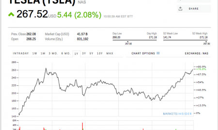 Tesla is up 1.97% at $267.25 a share on Thursday morning amid news that the car company is getting its factory ready...