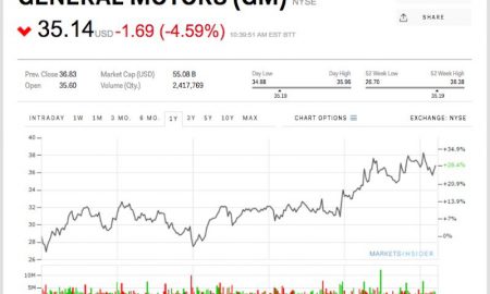 General Motors is down 4.59% at $35.14 after the company reported fourth-quarter and full-year 2016 earnings on Tuesday. The automaker said fourth-quarter...