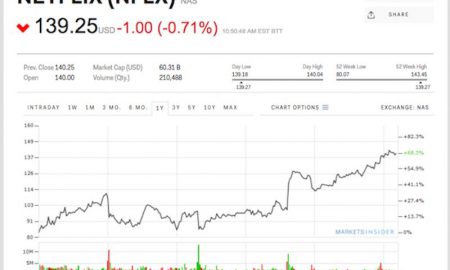 Netflix is down 0.7% at $139.25 a share after its Super Bowl commercial featuring a preview of the second season for “Stranger...