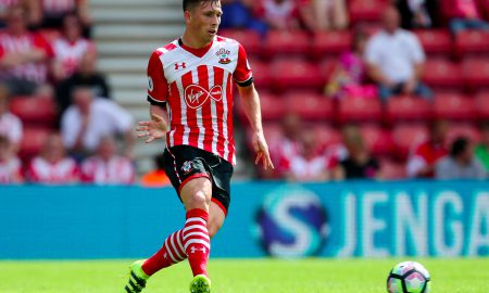 Pierre-Emile Hojbjerg of Southampton in action during the pre-season friendly between Southampton and Athletic Club Bilbao at St Mary’s Stadium on August...