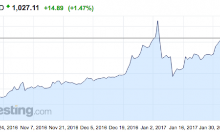 Bitcoin is on track for an eighth straight day of gains as it trades higher by 1.4% at $1,026 per coin as...