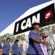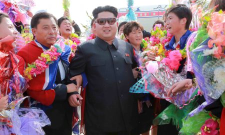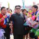 North Korean leader Kim Jong Un greets North Korea’s female soccer team as they arrive at Pyongyang International Airport on Monday after...