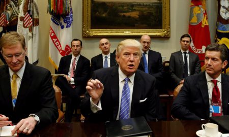 President Donald Trump hosts a meeting with business leaders in the Roosevelt Room of the White House on January 23, 2017.Kevin Lamarque/Reuters...
