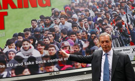 Leader of the United Kingdom Independence Party (UKIP) Nigel Farage poses during a media launch for an EU referendum poster in London,...