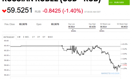 Markets Insider The Russian ruble just surged to its highest level since July 2015. The petro-currency is up by 1.4% at 59.5251...