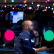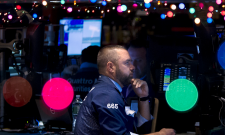 Trader Kevin Lodewick works on the floor of the New York Stock Exchange, which has been decorated with Christmas lights, in New...
