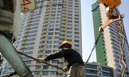 A worker shovels concrete from a mixer outside a new apartment building in Beijing.AP Photo/Greg Baker House prices in leading Chinese cities...