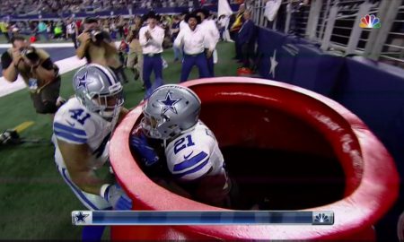 NBC Ezekiel Elliot scored his 13th rushing touchdown of his rookie season during the “Sunday Night Football” game against the Tampa Bay...