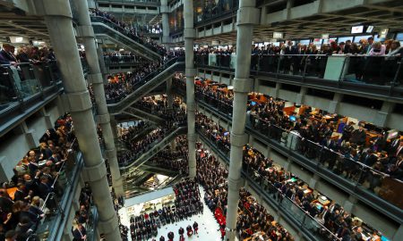 Lloyd’s of London staff hold their annual Armistice Day service at the Lloyd’s building in the City of London, Britain November 11,...