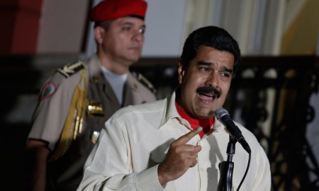 Venezuela’s President Nicolas Maduro (R) talks to the media after his meeting with former Spanish prime minister Jose Luis Rodriguez Zapatero in...