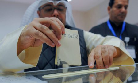 A Kuwaiti man casts his ballot to choose parliamentary representatives, in Kuwait City, Saturday, Nov.26, 2016. Kuwaitis voted Saturday for representatives in...