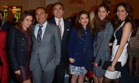 Sanjay Hinduja (2nd L) and guests attend the Mayfair Times Indian Summer Party at Mandarin Oriental Hyde Park on June 1, 2015...