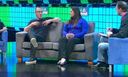 Payal Kadakia Pujji of Classpass, Fred Destin of Accel,Sarah Leary of Nextdoor, and Jim Edwards of Business Insider on stage at Web...