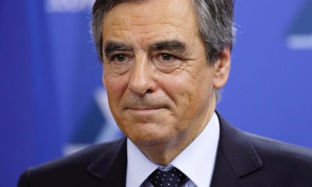 French politician Francois Fillon, member of the conservative Les Republicans political party, delivers a speech at his campaign headquarters after partial results...