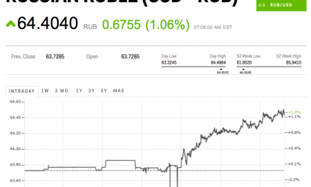 Markets Insider The Russian ruble is plunging. The currency is down by 1.1% at 64.4040 per dollar as of 7:16 a.m. ET....