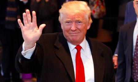President-elect Donald Trump waves to the crowd as he leaves the New York Times building following a meeting, Tuesday, Nov. 22, 2016,...