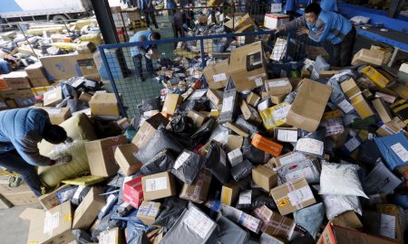 Employees work at a sorting centre of Zhongtong (ZTO) Express ahead of the Singles Day shopping festival, Chaoyang District, Beijing.Jason Lee/Reuters The...