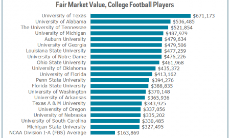 More Charts The chart below shows us how much college football players might be worth at the top programs if they were...
