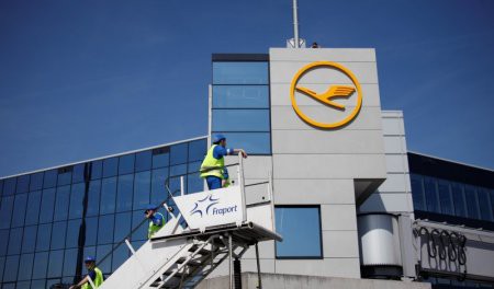 Thomson ReutersGround staff of Frankfurt airport operator Fraport stand on a ladder in front a Lufthansa Logo at Frankfurt Airport CARACAS (Reuters)...