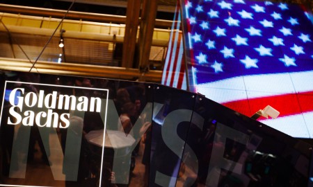 REUTERS/Lucas JacksonThe Goldman Sachs logo is displayed on a post above the floor of the New York Stock Exchange, September 11, 2013....
