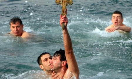Osman Orsal/ReutersGeorge Goutzioudis, a Greek Orthodox, retrieves a wooden crucifix as he swims in the Golden Horn in Istanbul on January 6,...