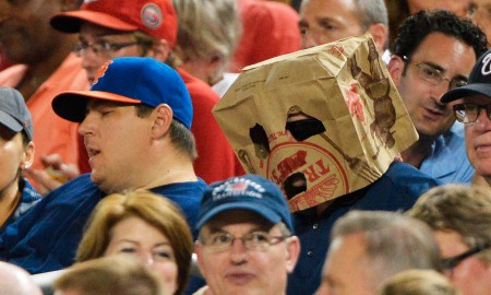 Reuters/USA Today SportsA fan wears a paper bag over his head during the eighth inning of the game between the Washington Nationals...