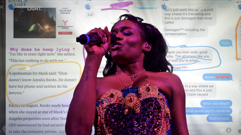 A spokesperson for Elon Musk told us that in an email that “Elon doesn’t know Azealia Banks. He doesn’t have her phone and neither do his lawyers.” A spokesperson for Tesla declined to comment on Banks’ post concerning how Musk determined the share valuation of $420.