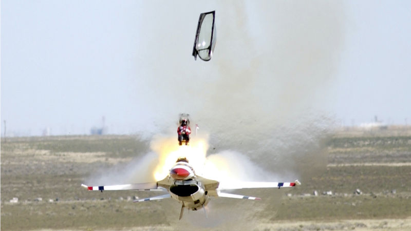 Martin-Baker, the British company that originally made the seat, helpfully details the ejection process on its website: