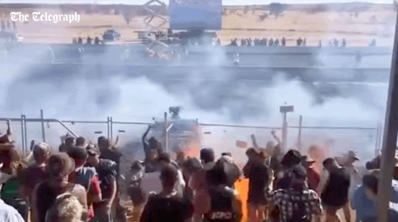 At a burnout competition in Alice Springs, Australia, on Sunday, things went very, very wrong, after the car of a driver doing burnouts spewed flaming fuel into the crowd, injuring 14, including one man who was left in critical condition.