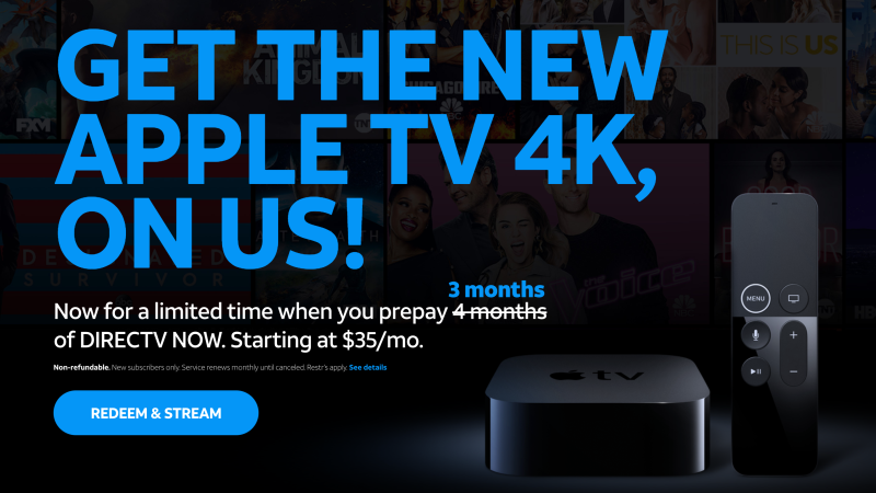 For a limited time, if you prepay for three months of the service at $35 per month, you’ll get a 4K Apple TV included for free. That Apple TV costs $179 normally, so you’re basically getting a $74 discount on the box, plus three months of live TV. No brainer.