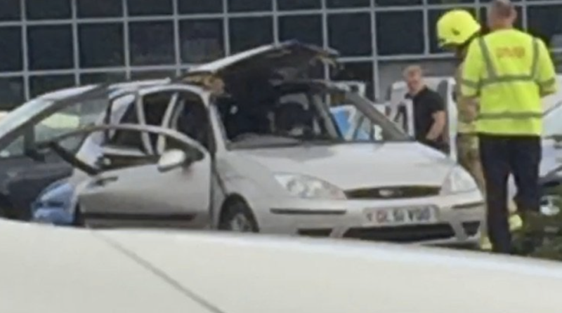 ‘Then I just heard screams and ran to the car and all the windows were smashed and the doors were buckled. The whole car park is covered in bits of car.’