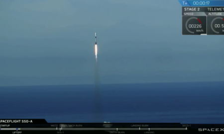 A SpaceX Falcon 9 rocket filled with small satellites launching from the Vandenberg Air Force Base in California on Monday.Image: SpaceX Webcast...