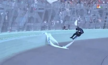 Screenshot: Steve Luvender The catch fencing at Homestead-Miami Speedway did its job before today’s NASCAR Cup race, successfully catching a skydiver’s parachute,...