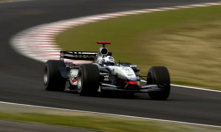 David Coulthard running Suzuka in 2003. I believe this is 130R. Look close and you’ll see the dust on this slide film.Photo:...